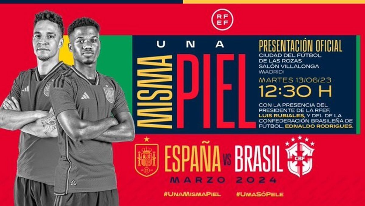 Ahora, bajo el lema 'Una misma piel' España y Brasil refuerzan sus lazos futbolísticos y sus compromisos sociales. El presidente de la RFEF, Luis Rubiales, ya se reunió hace unos días en la Ciudad del Fútbol de Las Rozas (Madrid) con Orlando Leite, embajador de Brasil en España.