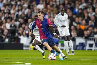Marc Casado of FC Barcelona in action during the Spanish league, La Liga EA Sports, football match played between Real Madrid and FC Barcelona at Santiago Bernabeu stadium on October 26, 2024, in Madrid, Spain. - Oscar J Barroso / AFP7 / Europa Press