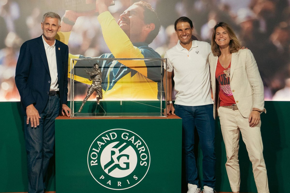 El presidente de la Federación Francesa de Tenis, Gilles Moretton, y la directora de Roland Garros, Amelie Mauresmo, fueron los encargados de hacer entrega de la réplica al propio Rafa Nadal en las instalaciones de su academia.