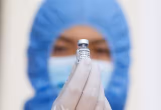 Un profesional sanitario peruano sostiene una dosis de la vacuna contra la COVID-19 de Pfizer. - Karel Navarro/Minsa/dpa