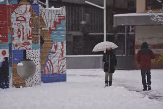 Archivo - Gente pasea por las calles tras el paso de la borrasca Filomena, en Huesca, Aragón (España), a 9 de enero de 2021. Las predicciones realizadas por la Agencia Estatal de Meteorología (AEMET) prevén precipitaciones generalizadas de nieve en la p