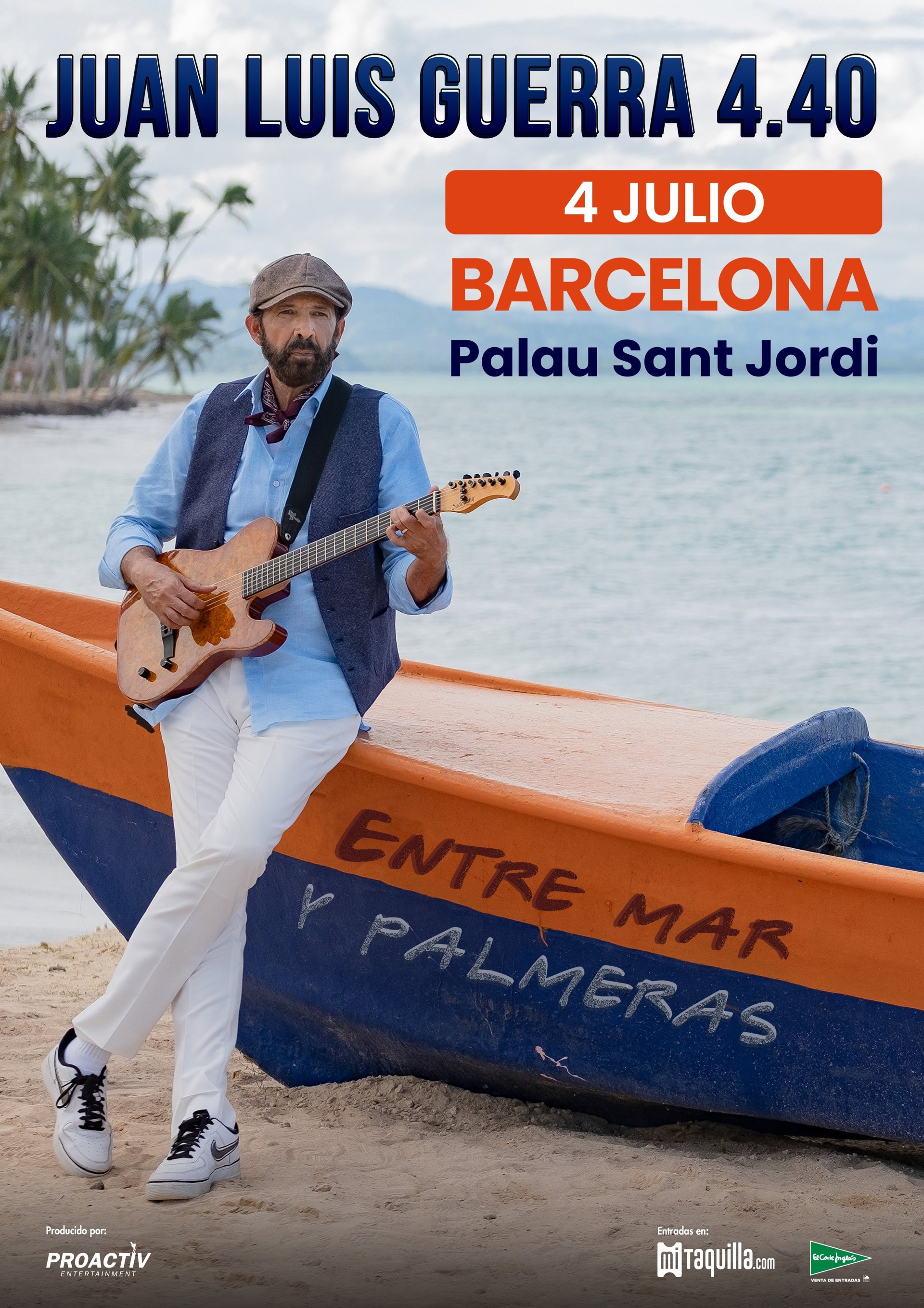 El cantautor dominicano Juan Luis Guerra actuará en el Palau Sant Jordi de Barcelona el martes 4 de julio de 2023 dentro de su gira 'Entre mar y palmeras'.
