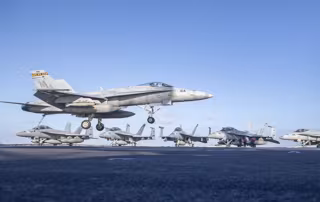 Archivo - Un F/A-18 Hornet de la Armada de EEUU aterriza en el portaaeronaves 'USS Nimitz' en aguas del océano Índico (archivo) - Europa Press/Contacto/Mcs3 Elliot Schaudt/U.S. Nav