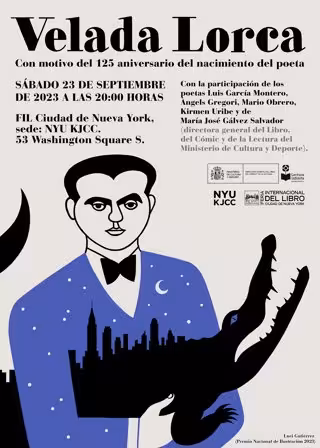 Con motivo de la conmemoración del 125 aniversario del nacimiento de Federico García Lorca, se ha programado una velada de homenaje en la que el poeta y director del Instituto Cervantes, Luis García Montero, junto a los poetas Mario Obrero, ngels Gregori y Kirmen Uribe recordarán y celebrarán al autor de 'Poeta en Nueva York'. La actividad, comisariada por Gregori, estará moderada por María José Gálvez.