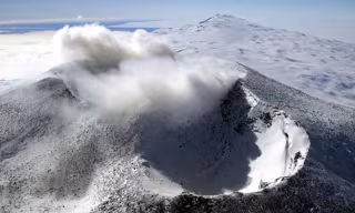 Una nueva investigación descubre que el derretimiento del hielo en la Antártida puede provocar más erupciones subglaciales, afectando a volcanes como el Monte Erebus, que se ve aquí. - JOSH LANDIS, U.S. ARCTIC PROGRAM,