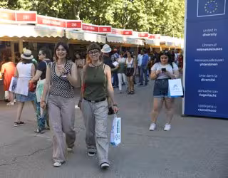 Archivo - Varias personas en las inmediaciones de la caseta 'Terraza Europa' de la Feria del Libro, donde se ha celebrado el encuentro Literatura, otra forma de hacer Europa, a 3 de junio de 2022, en Madrid (España). Durante este encuentro se llevan a - Isabel Infantes - Europa Press - Archivo