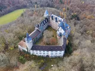 Aerial view of Rammelburg Castle, Germany, Winter 2025